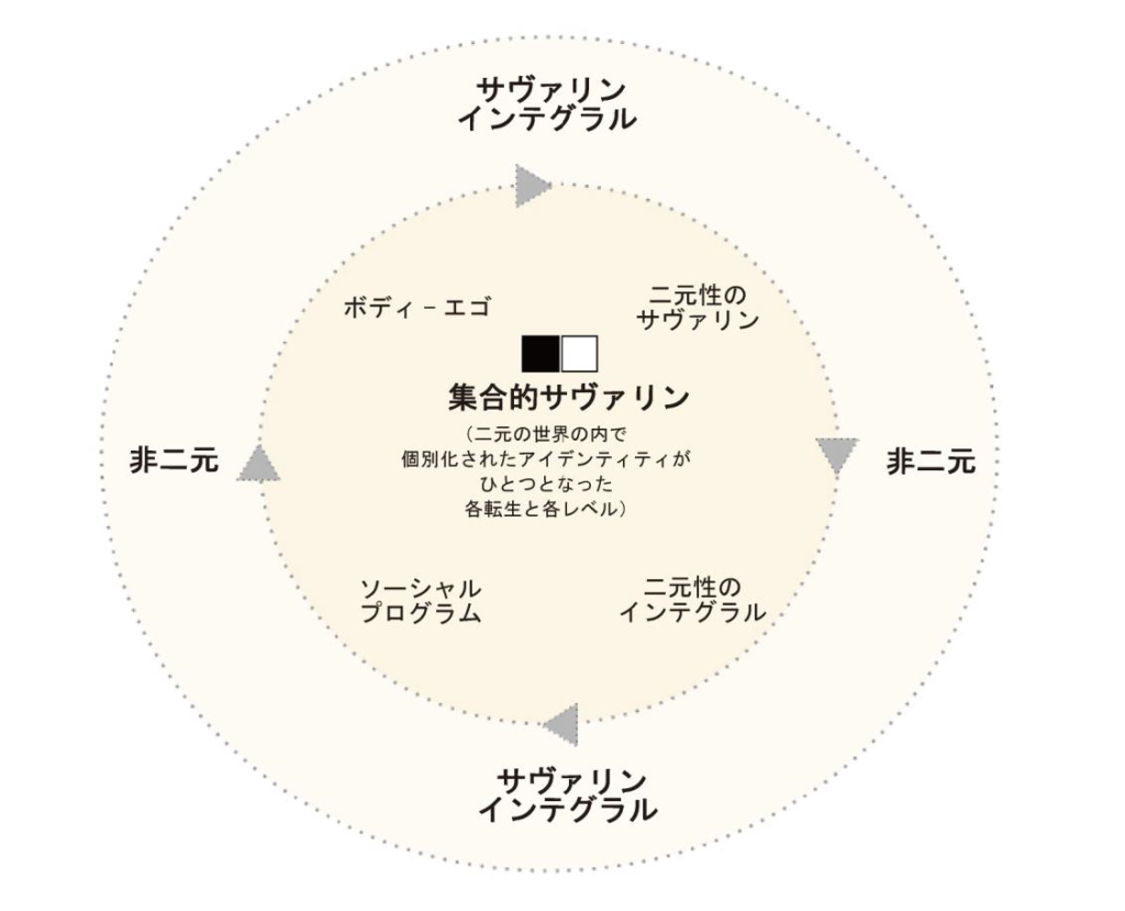 17 サヴァリンがプリズムで、インテグラルが光です。各転生がプリズムを通して分離された各色であり、そのレベルあるいは次元の中が、各転生が展開される舞台です。サヴァリンは、ボディ-エゴ-ソーシャルプログラムに対しては不可知論的な立場にあります。それらにはすべて価値があります。それぞれがインテグラルに対するその理解を広げ、深めるのに貢献し、その総合体がサヴァリン・インテグラルの意識へと導きます。