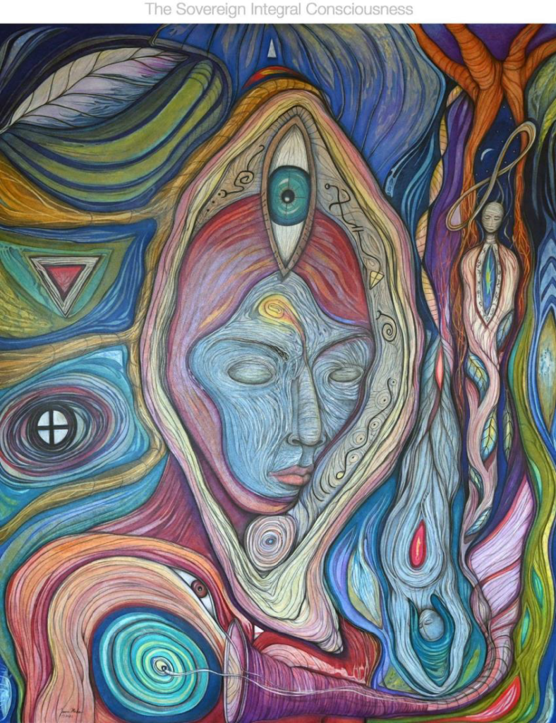 一方、意識は特定の宗教的または霊的組織の独占物ではありません。それは完全に存在するものであり、無限のものです。それ故に意識はすべてのものを含みます。少なくとも私の探究において、意識を簡略に定義するならば、主権的自己(サヴァリン・アイデンティティ)(個 – セルフ)と統合的自己(インテグラル・セルフ) (全体 – ホールネス)の合成体です。つまり、意識を指す私の用語は、サヴァリン・インテグラル*1なのです。