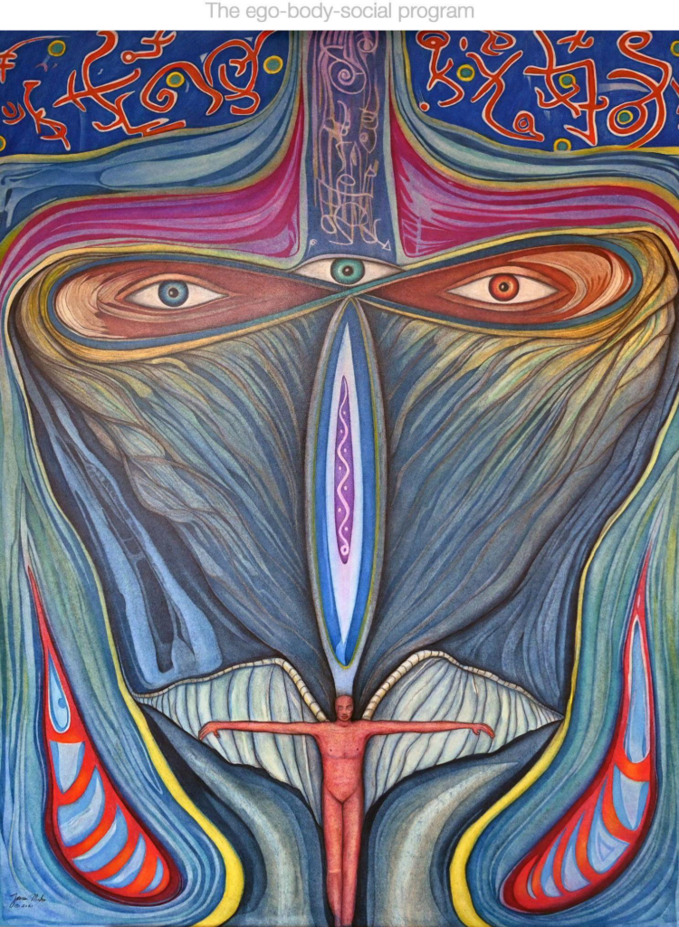 8 二元性の世界では、全人類のボディ-エゴが私たちの共有する現実(リアリティ)、つまり私がこの論文で集合的ソーシャルプログラムと呼んでいるものを定義しており、サヴァリンは、宇宙飛行士が宇宙服の中にいるように、マインド、感情、ボディ-エゴに宿っています。