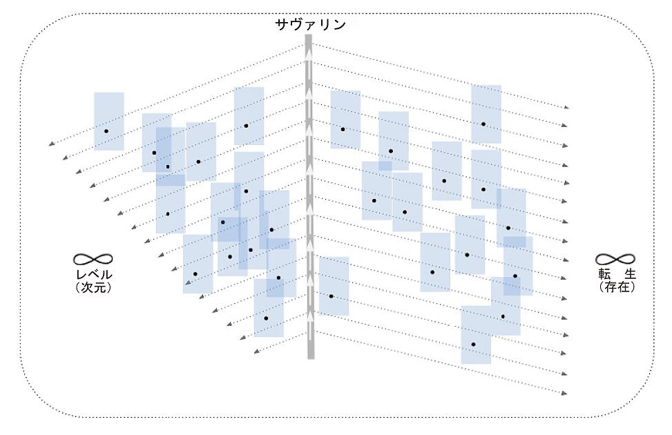 15 この図の中でサヴァリンは、レベルと転生(ライフタイム)を横断する経験のコレクターです。これはサヴァリンの唯一の役割でも機能でもありませんが、中心的なものです。サヴァリンの愛、知性、相互接続、拡大に対する理解を深めるのに役立つ有意義な経験が、その存在の価値ある決定的な材料となります。