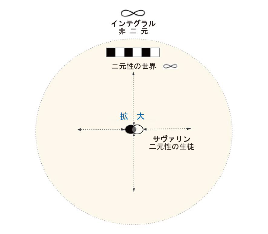 14 上の図は、サヴァリンを視覚的に表したものです。(サヴァリンとインテグラルのような二元性と非二元性の世界の間を流れるフラクタルの概念は、そもそもペンやキーボードを打つことで表現できないものであることを私は認めます)