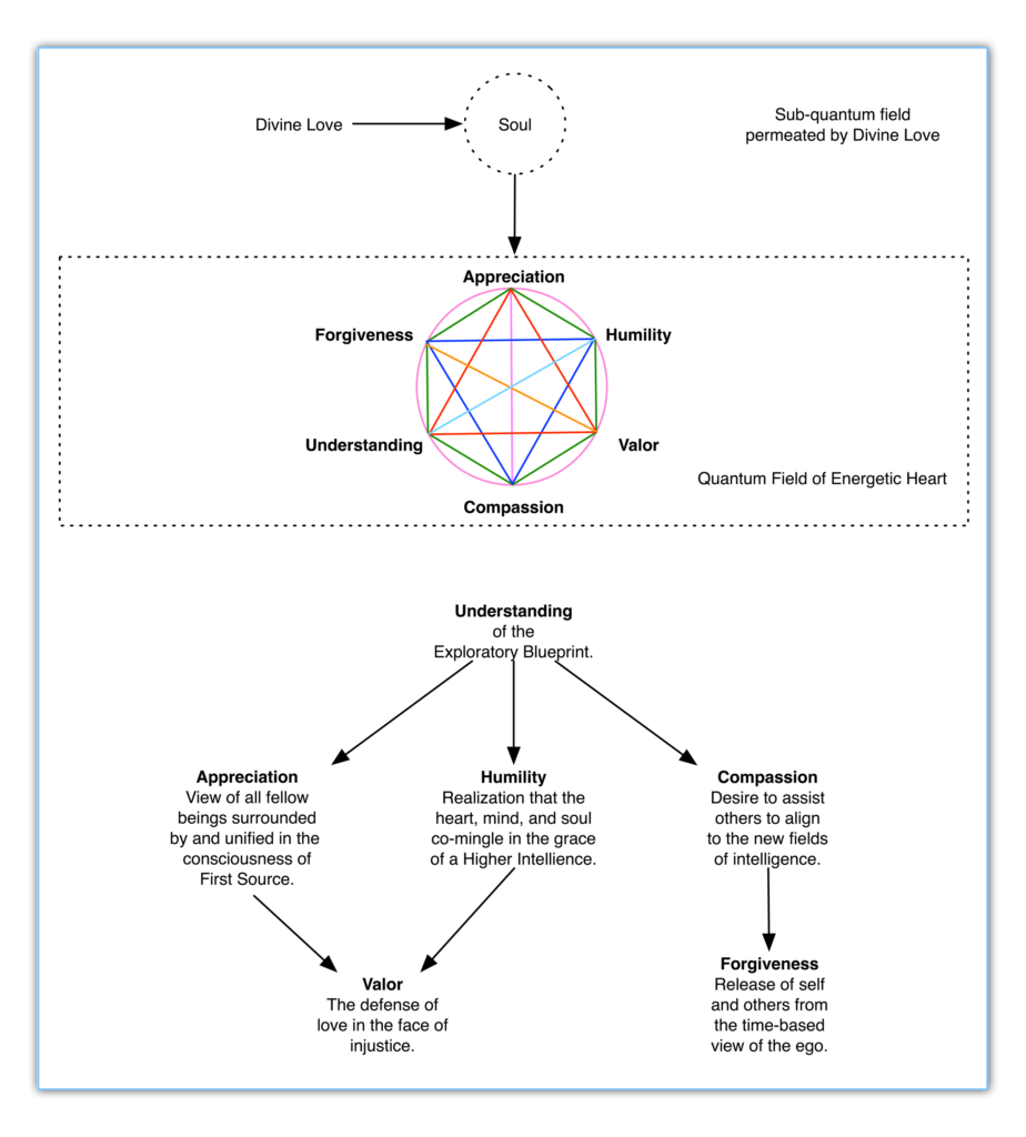 ソウルは、ファーストソースから生じた愛の周波数を表現します。これは人間という装置の中に体現されている間、人間という装置へとその繊細で荘厳な愛の周波数を循環させるという意味において、ソウルの最も重要な目的です。愛の周波数が、マインドよりもハートをより積極的な協力者とみなすことは何ら驚くに値しないでしょう。謙虚とは、ハートとマインド、そしてソウルがファーストソースの恩寵の中で混ざりあっているという認識です。ハート、マインド、ソウル、その存在そのものが、ファーストソースからの愛の恵みを通じて支えられています。それは、ちょうど樹木が太陽の光によって支えられているのと同様に確かなものです。